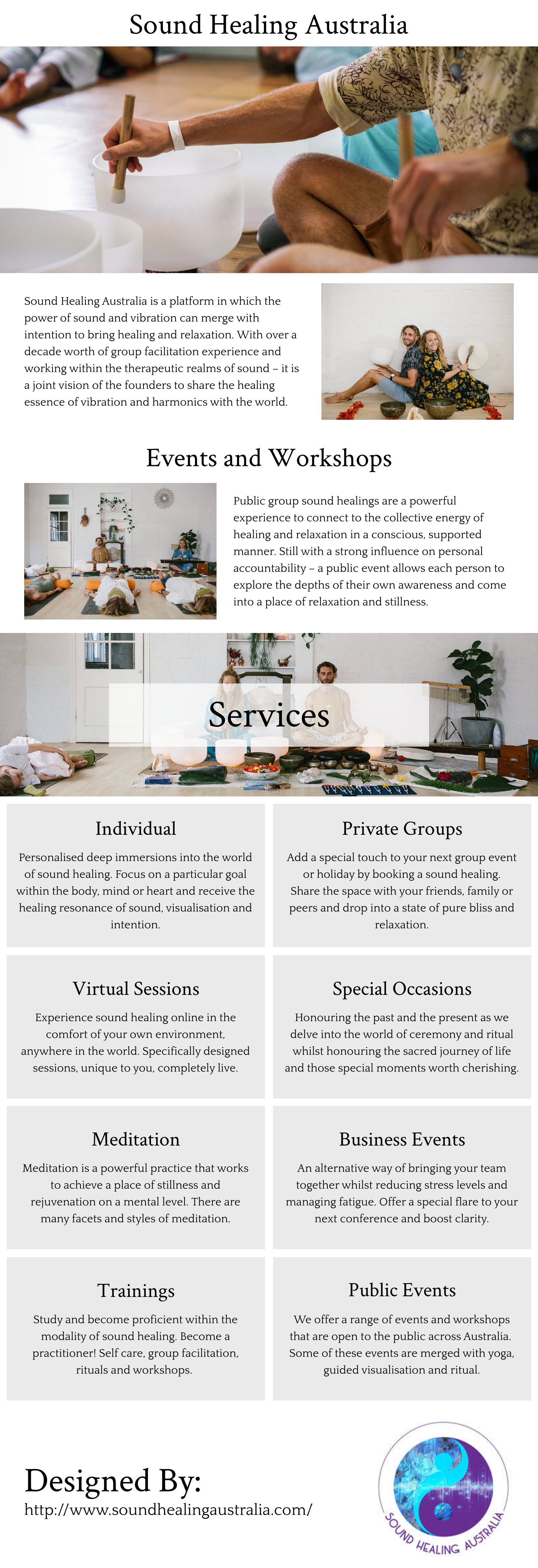 Sound Healing is an ever-expansive and powerful therapy that utilises the organic world of sound and vibration to return the body to homeostasis. A fusion of multi-faceted instruments, meditation and breathwork; Sound Healing commences on a physical/auditory level and settles into the molecular structure of the body replenishing the emotional, mental and energetic aspects of self. Sound Healing offers the opportunity to transcend cognitive thoughts and conditional patterns allowing those seeking a depth within their personal growth and spiritual development a glimpse of authentic self-reflection. Guided meditations, visualisations, pure crystal singing bowls and sacred mantra unify the natural elements and our physical being; restoring balance and equilibrium personally and within the community.